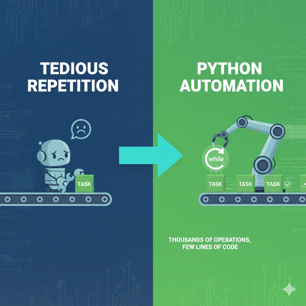 Python loops are here to rescue you from tedious repetition. In this guide, you’ll master the while loop – one of Python’s most powerful tools for automating repetitive tasks. By the end, you’ll be able to write efficient code that can handle thousands of operations with just a few lines. Let’s dive in!